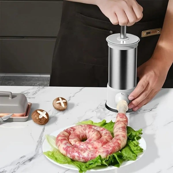 Snadno si doma vyrobte čerstvé a chutné klobásy s pomocí SAUSAGER – odolné a snadno použitelné sady na plnění klobás. S kapacitou 1 kg, několika velikostmi trysek a stabilním protiskluzovým podstavcem je ideální pro rodinné oslavy, večírky a pro každého, kdo miluje domácí jídlo.