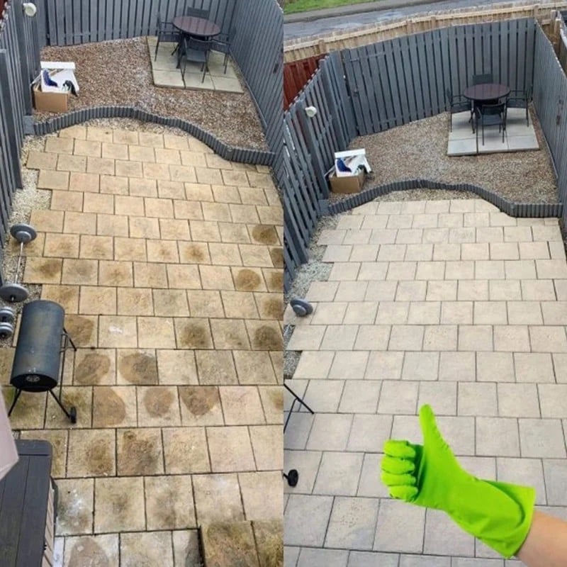 „Bezpieczny dla mojego kamiennego patio – żadnych uszkodzeń, tylko blask.”
