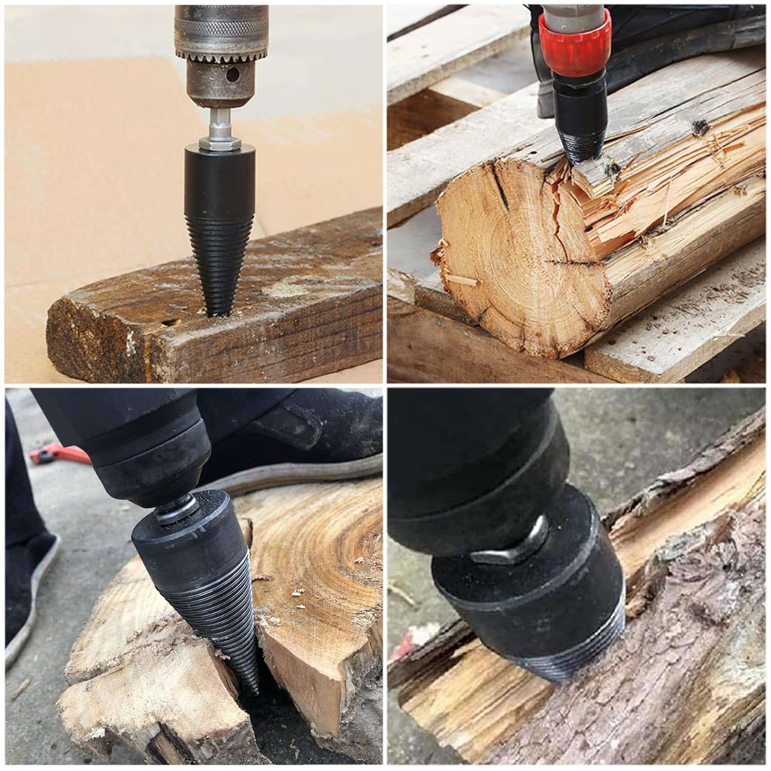 Kompatybilne z prawie każdą wiertarką elektryczną, WOODSPLIT jest idealne do użytku domowego, na kempingu lub przygotowywania dużych ilości drewna do przechowywania na zimę.
