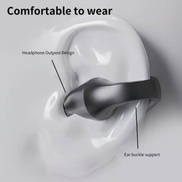 Ergonomický dizajn s ušnými háčikmi zabezpečuje bezpečné a beztlakové nosenie. Môžete ich nosiť hodiny bez nepohodlia alebo pocitu upchatých uší, ako pri tradičných slúchadlách.